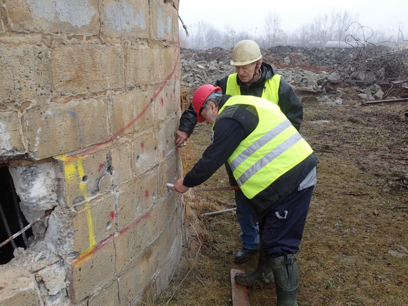 Odstřel komínu a železobetonových patek v Moravské Třebové (Stavební firma Miroslav Lopour).